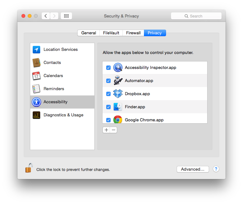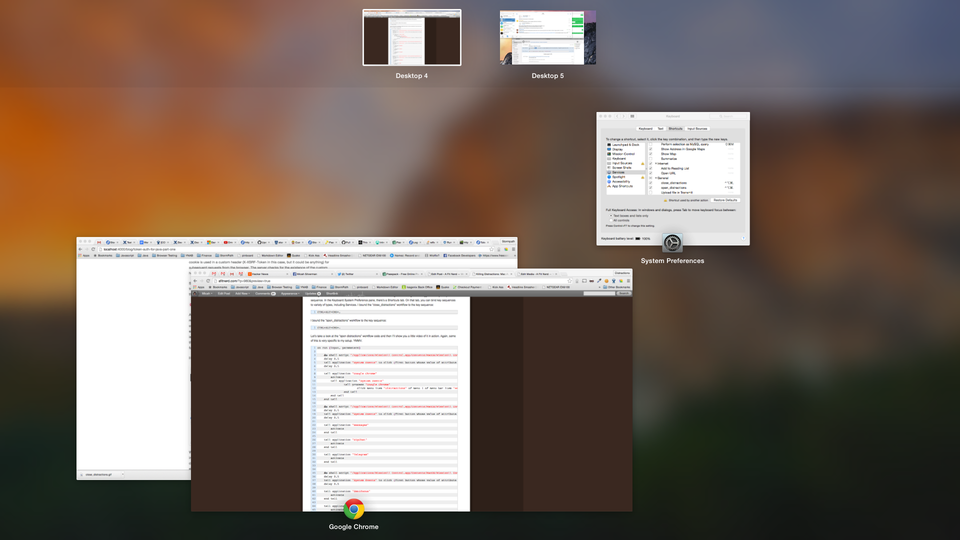 CTRL+ALT+CMD+]During my testing of these scripts, I had to add certain applications to a list of applications allowed to interact with the Accessibility features of OS X. I probably should have kept better track, but it included Automator and Google Chrome.