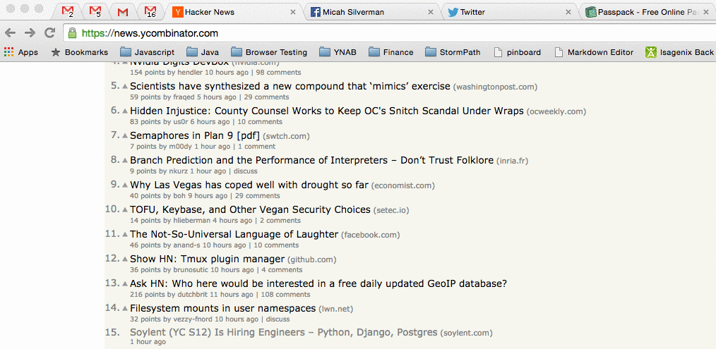 - Hipchat - awesome messaging app for work. Annoyingly, disregards "Do Not Disturb" setting on Mac.